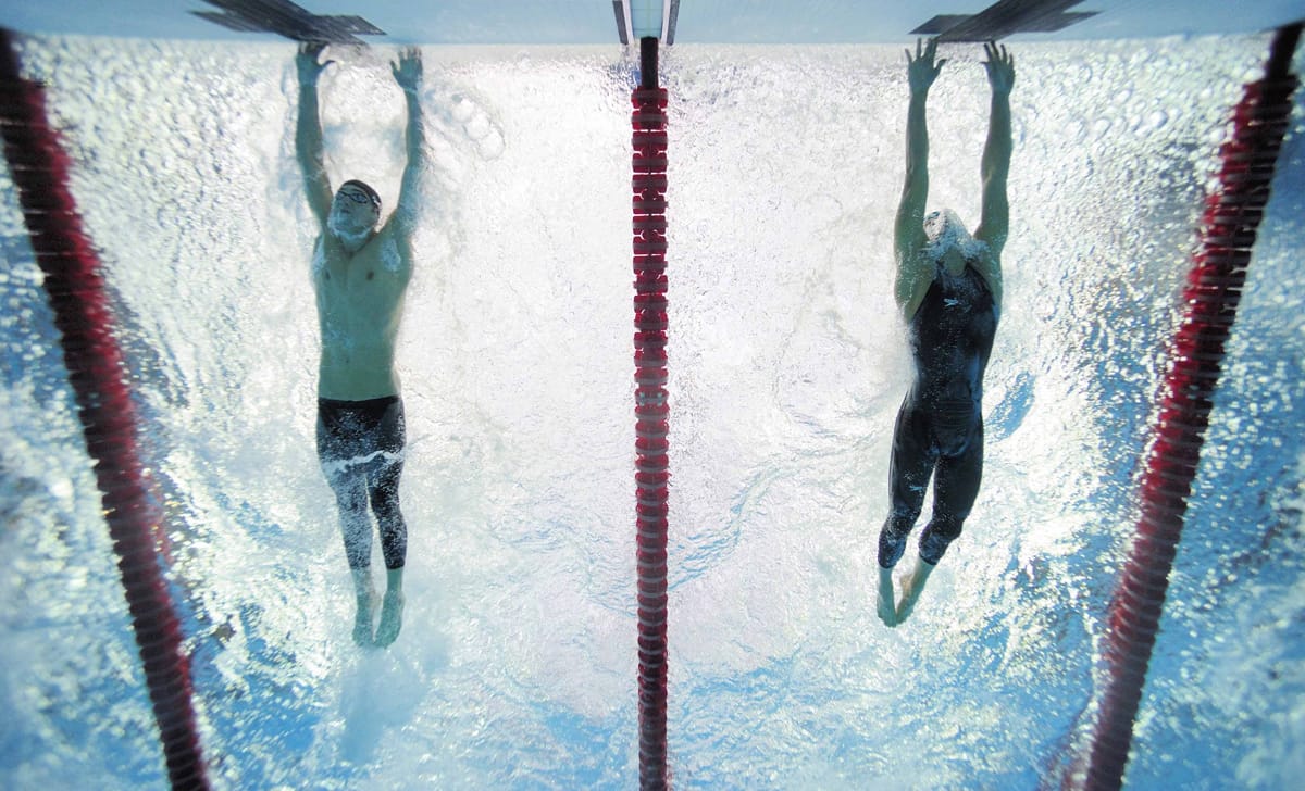 Michael Phelps defeated Milorad Cavic by one hundredth of a second at the 2008 Olympics, in a dramatic photo finish.